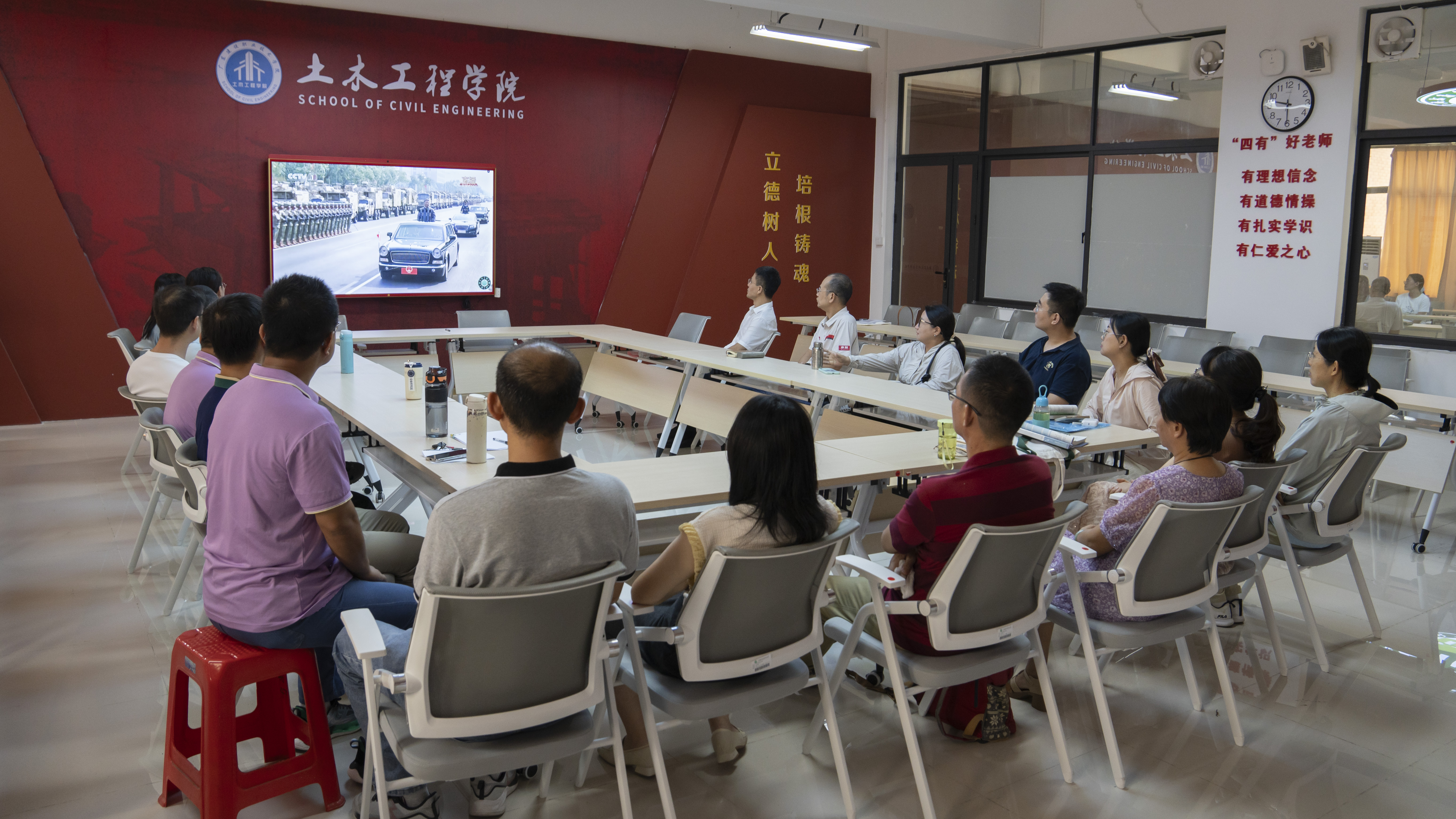 学校党委书记李国章表示,习近平总书记的讲话深刻传递出铭记历史、开创未来的坚定信念;盛大阅兵式尽显国力军力的蓬勃气象,让每一位中华儿女倍感振奋。抗日战争的伟大胜利,是我们党团结带领人民以生命和鲜血铸就的丰碑。广东建院将牢记总书记嘱托,立足建筑特色,服务广东现代产业发展,坚定弘扬伟大抗战精神,培育新时代建设尖兵,打造服务中国基建出海的“现代鲁班摇篮”,为教育强国建设和民族复兴伟业贡献力量。
